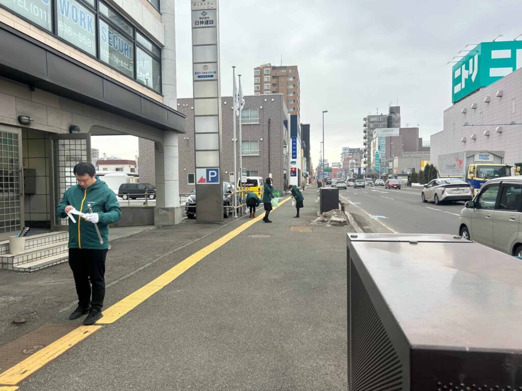 2026/3/3 2026 3/03 本社 日伸建設本社の地域貢献活動です。雪に埋もれていたゴミたちが雪解けとともに!寒い中、お疲れさまでした! 東北営業所 日伸建設東北営業所の地域貢献清掃活動の様子です。今日はいつもよりごみが多かったです。お疲れさまでした。 地域貢献活動 2026/2/24