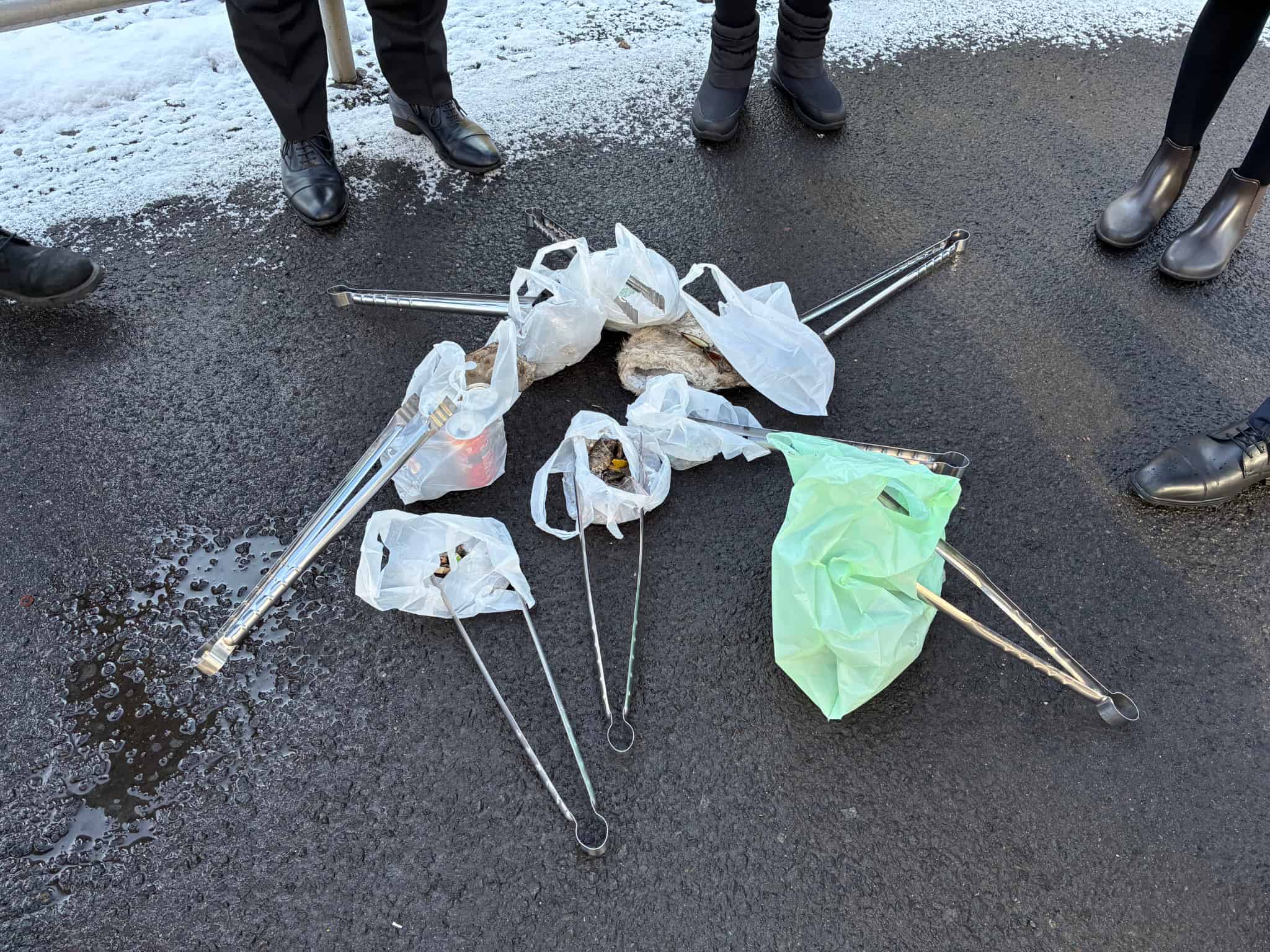 少し雪がありましたが、多くのごみがありました。特に、自動販売機近くに空き缶がたくさん置かれていました。お疲れ様でした。