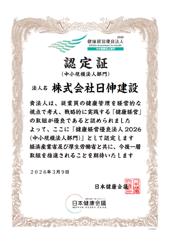 今年も、【健康経営優良法人2026(中小規模法人部門)】の認定を頂くことが出来ました。